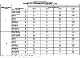 Ceiling joist spans for southern yellow pine, douglas fir, and eastern note: